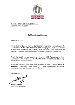 To confirm with our customer requirements and commitment of good management systems, PT. UMI has been certified since 2000 according to International Standard ISO 9001 : 2015 Edition and ISO 14000 : 2015.