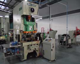 Production machinea are range from 15 to 160 ton presses made in Japan and Taiwan with mechanical roller, Air and NC feeder.